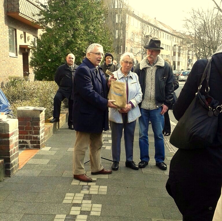 Stolpersteine 1Frieda, Hermann und Erich Kleeberg sind tot, nur weil sie Juden waren wurden sie deportiert und grausam ermordet. Am 23. März, als unsere Schule die Patenschaft der Stolpersteine in der Wißmannstraße übernahm, wurde ihnen ganz besonders gedacht.