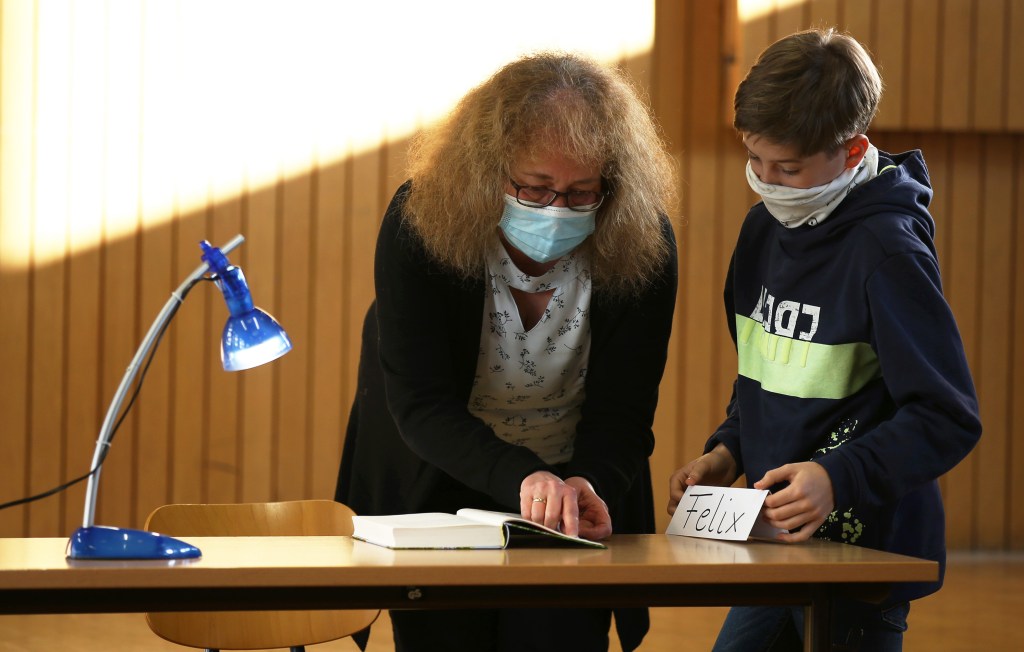 Mit nur jeweils einer Freund*in im Publikum durften die acht ihr können unter Beweis stellen, denn coronabedingt waren keine Zuschauenden aus den Klassen erlaubt und die Kandidierenden mussten eine Maske während des Vorlesens tragen, was sie allerdings ohne Probleme meisterten. Eine weitere Einschränkung war, dass diesmal keine Schüler- oder Elternvertreter*innen der Jury beisitzen konnten. Auch der Ort der Veranstaltung war ein anderer als üblich. Hat der Wettbewerb sonst immer im Gemeindesaal der Pauluskirche stattgefunden, wurde er dieses Jahr in der Aula der Meterstraße abgehalten.