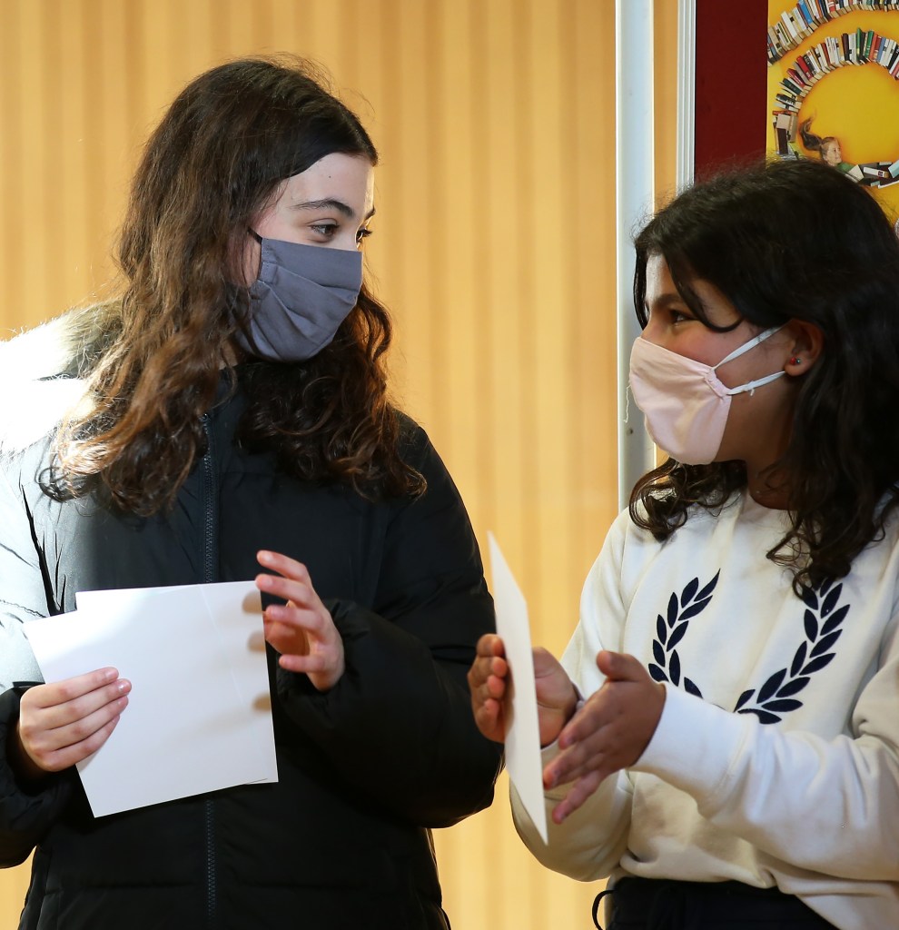 Die glückliche Gewinnerin ist Asya Onbisilar aus der 6c. Sie hat die Jury, die diesmal nur aus Lehrkräften bestand, am meisten überzeugt und darf sich nun beim Stadtentscheid behaupten. „Ich bin immer ganz begeistert, wie die Schüler vorbereitet sind. Es waren wieder ganz starke Leserinnen und Leser dabei und die Entscheidung fiel uns sehr schwer“, erzählt uns Frau Huth, die den Vorlesewettbewerb schon seit Jahren organisiert. Zuerst dürften die Schüler*innen eine Stelle aus einem selbstgewählten Buch vortragen. In der zweiten Runde wurde eine unbekannte Textstelle aus „Ein Sommer in Sommerby“ von Kirsten Boie vorgetragen.