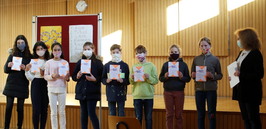 Trotz der Coronapandemie hat wie jedes Jahr der Vorlesewettbewerb der sechsten Klassen stattgefunden. Zwar ohne Publikum, aber wieder mit sehr talentierten Vorleser*innen. Die Gewinnerin kann sich nun beim Stadtentscheid behaupten.