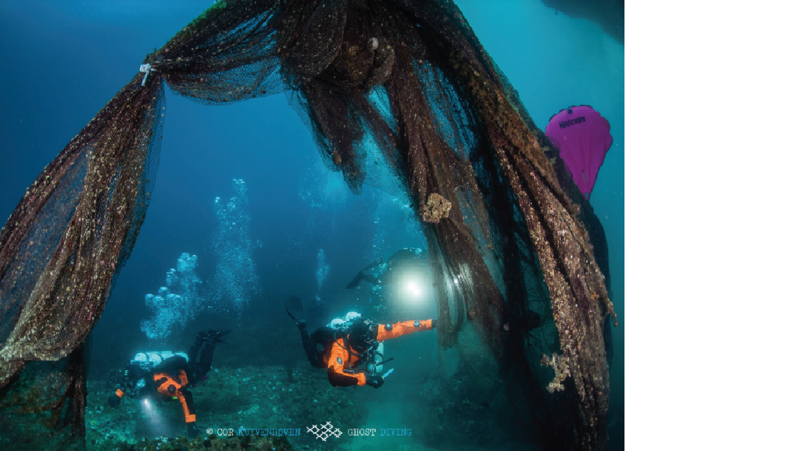 In den Gewässern Europas landen 1,250 km Geisternetze pro Jahr. Geisternetzte sind Fischernetze, die sich von den Fischerbooten gelöst haben. Das Problem mit Geisternetzen ist, dass sie, auch wenn sie inaktiv sind, weiter Meerestiere im Meer fangen, die dann in den Netzen verenden.