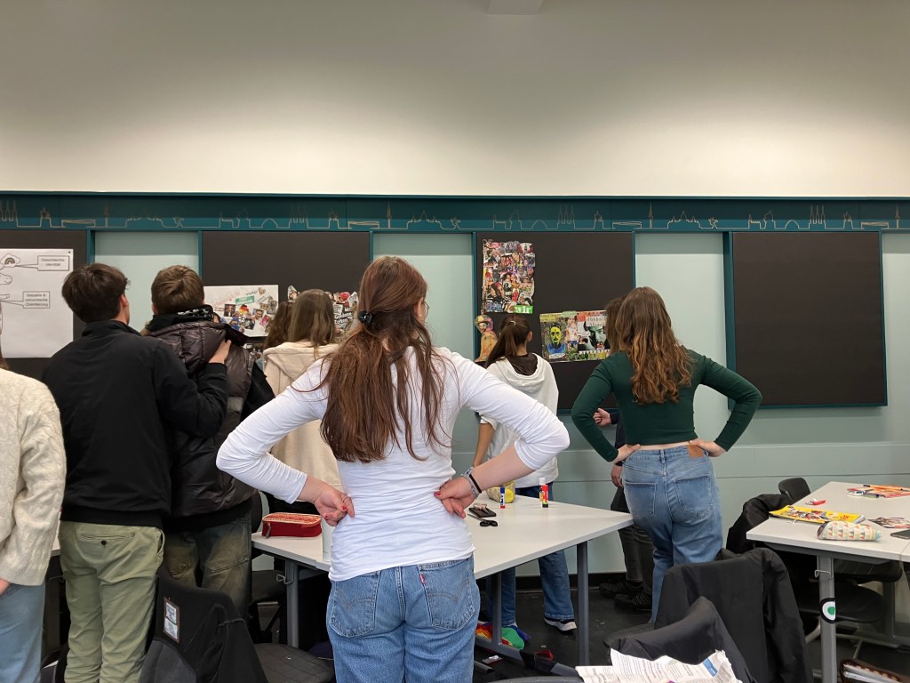 Diversität – so lautet das Thema des Projekttages der 10 B. Ziel ist es, auf Probleme und Inakzeptanz aufmerksam zu machen und auf eine friedliche tolerante Gesellschaft hinzuarbeiten. In angeregten Diskussionen und kreativen Gruppenarbeiten entstehen dabei bunte Collagen und Tafelbilder. Fragen werden beantwortet, Begriffe erklärt. Die eingeladene Referentin Madalina Sundh, eine evangelische Pastorin, welche sich für offen gelebte Diversität einsetzt, legt den Schwerpunkt neben der allgemeinen Sensibilisierung zusätzlich auch auf den Bezug zur Schule. So sind in jeder Klasse statistisch ein bis zwei queere Jugendliche. Jedoch bleiben diese in der Schulgemeinschaft häufig unsichtbar, bis sie sich outen oder geoutet werden – oder werden offen diskriminiert und gemobbt. „Die Angst vor dieser Diskriminierung ist der Grund, weshalb queere Jugendliche sich oft verstecken und als cis/hetero ausgeben, und das sollte nicht sein.“, so Madalina Sundh. Auch Lehrkräfte sind häufig an der Diskriminierung beteiligt oder unternehmen nichts dagegen.