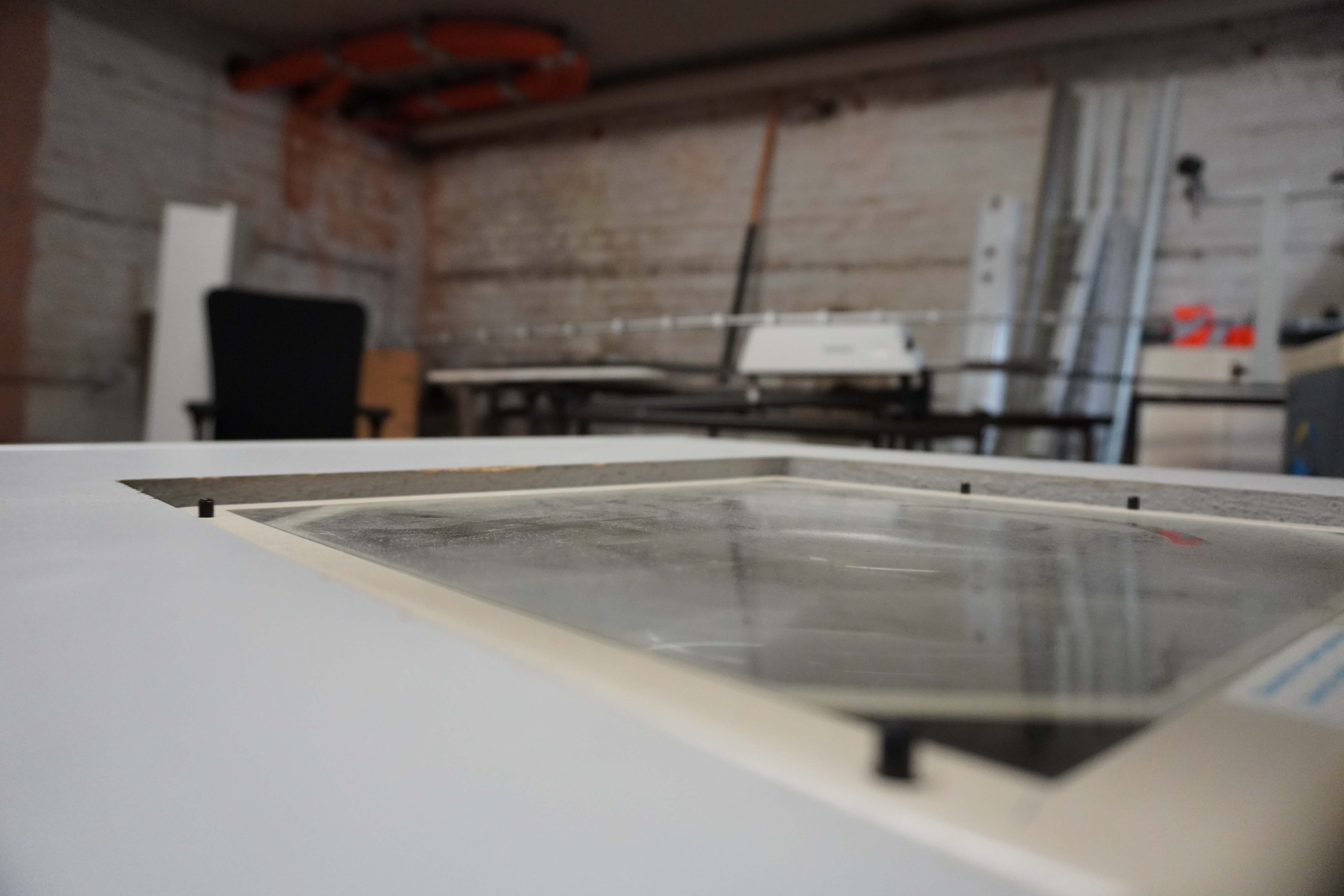 Wir schauen uns im Raum um und finden einen von Staub bedeckten Projektor: