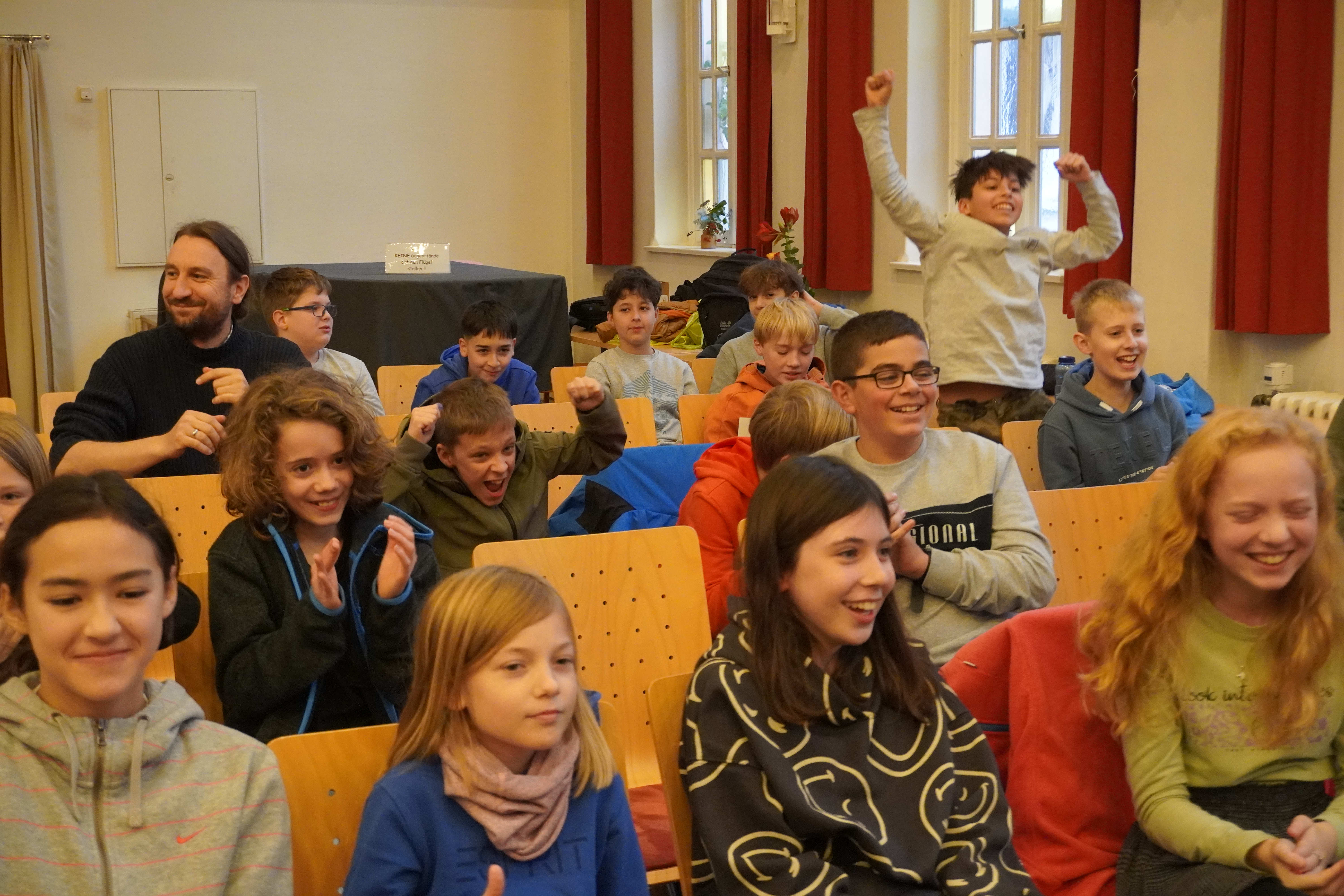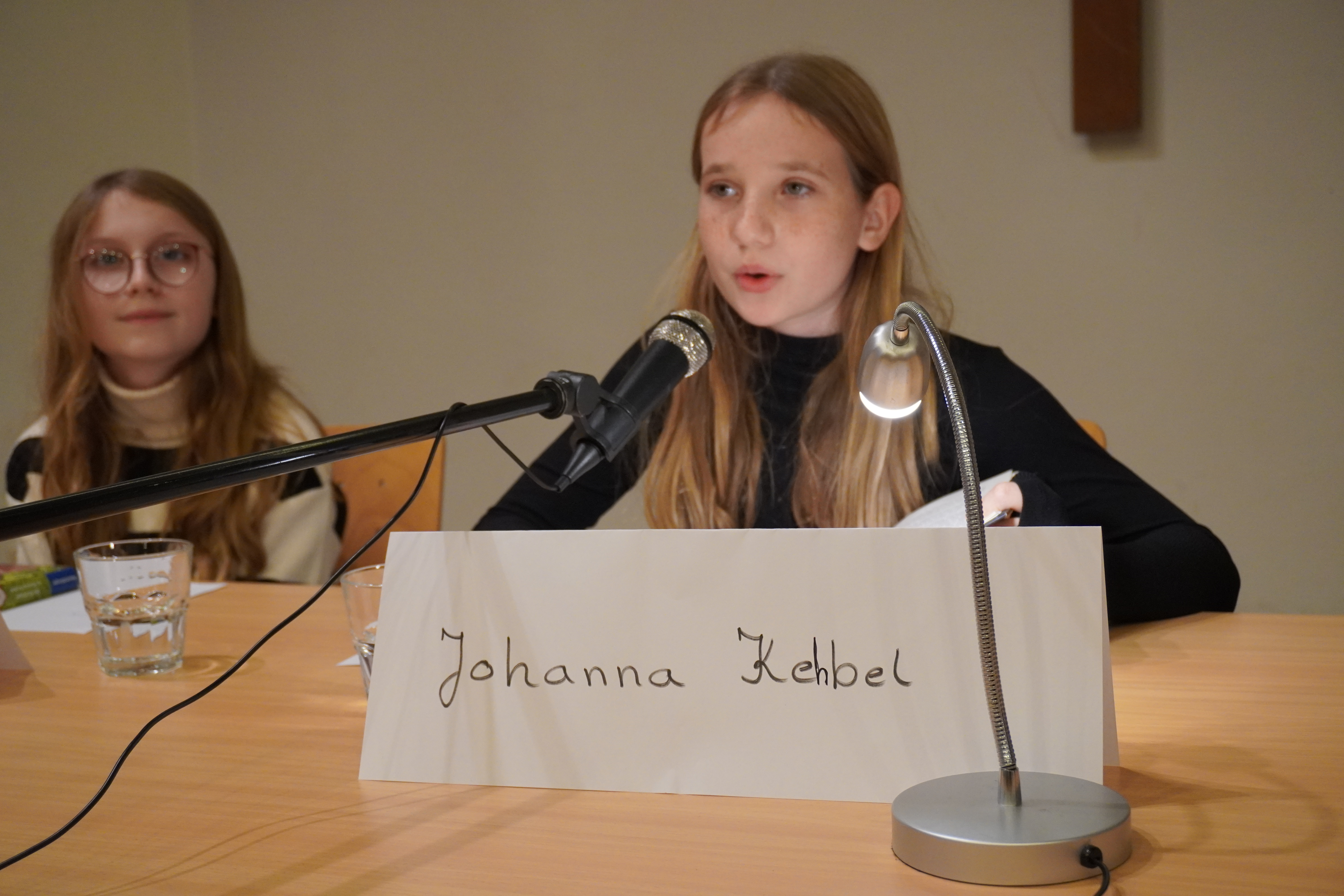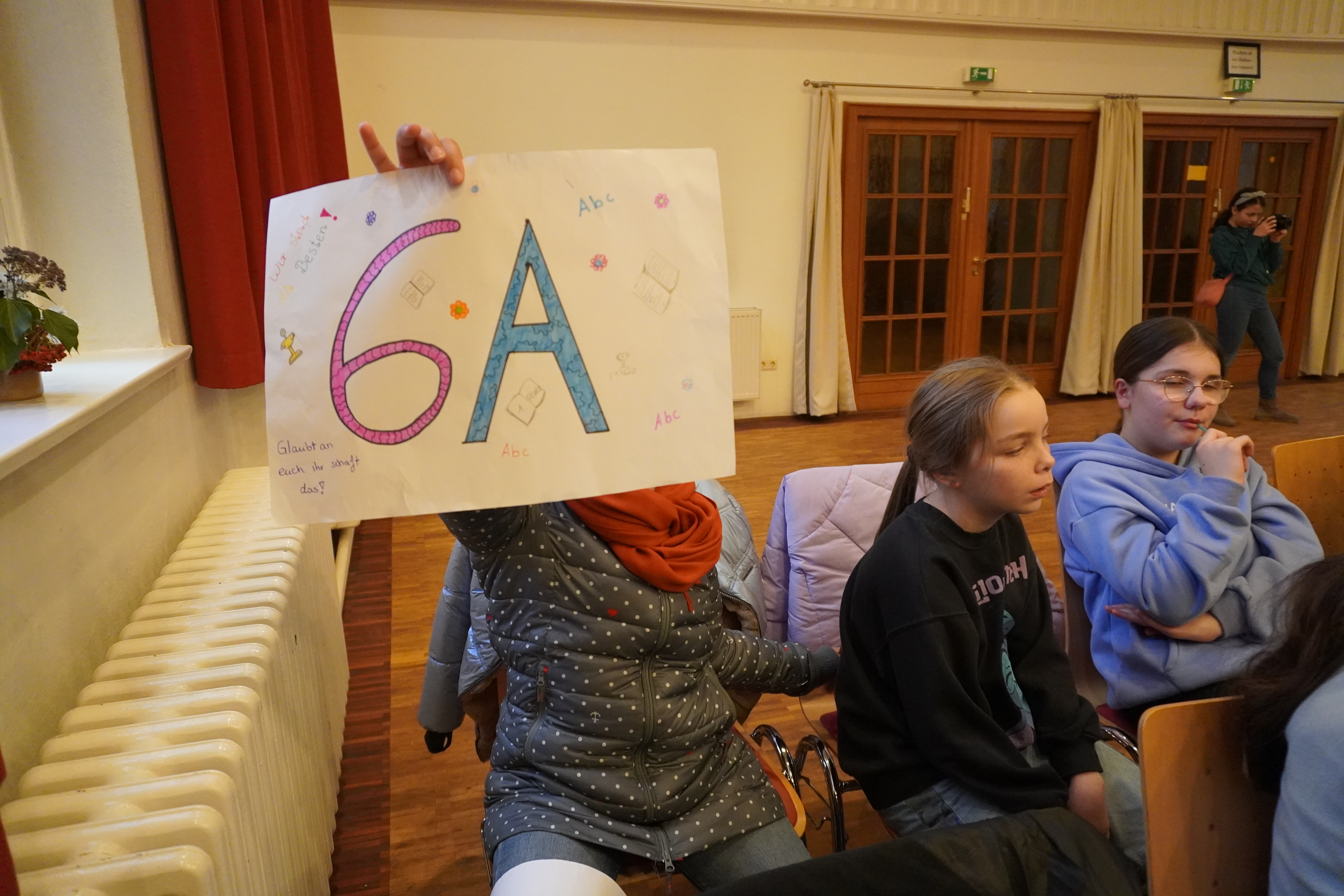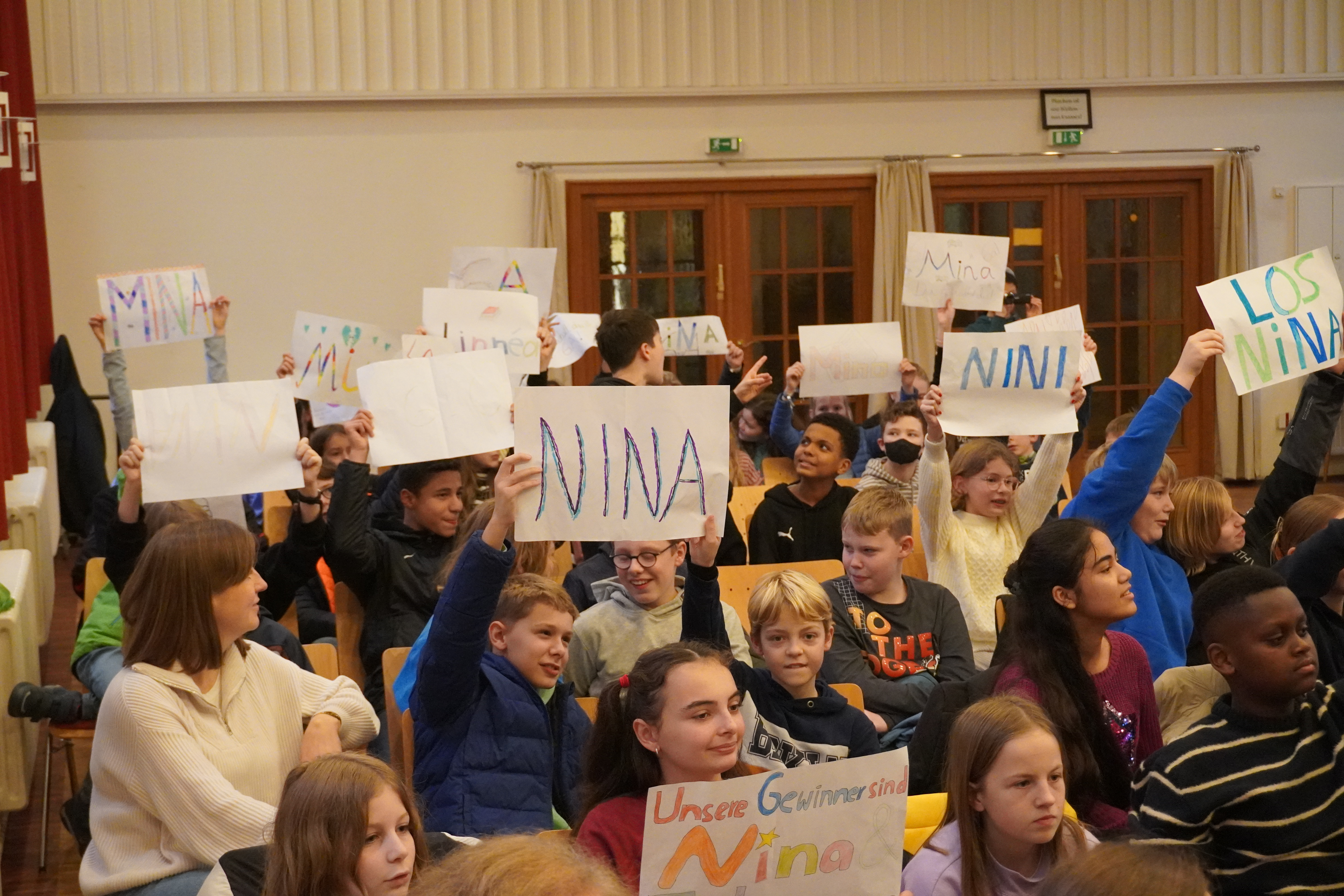 Alle Teilnehmer haben alle erst aus ihrem eigenen Buch vorgelesen und dann aus einem fremden Text. Begleitet wurde alles von motivierenden Plakaten und Applaus ihrer Mitschülerinnen und Mitschüler. Sie hatten alle gute Chancen und die Jury tat sich mit ihrer Entscheidung sehr schwer , doch am Ende gewann Johanna Kehbel aus der 6c mit „Woodwalkers – Carags Verwandlung“ – herzlichen Glückwunsch Johanna!