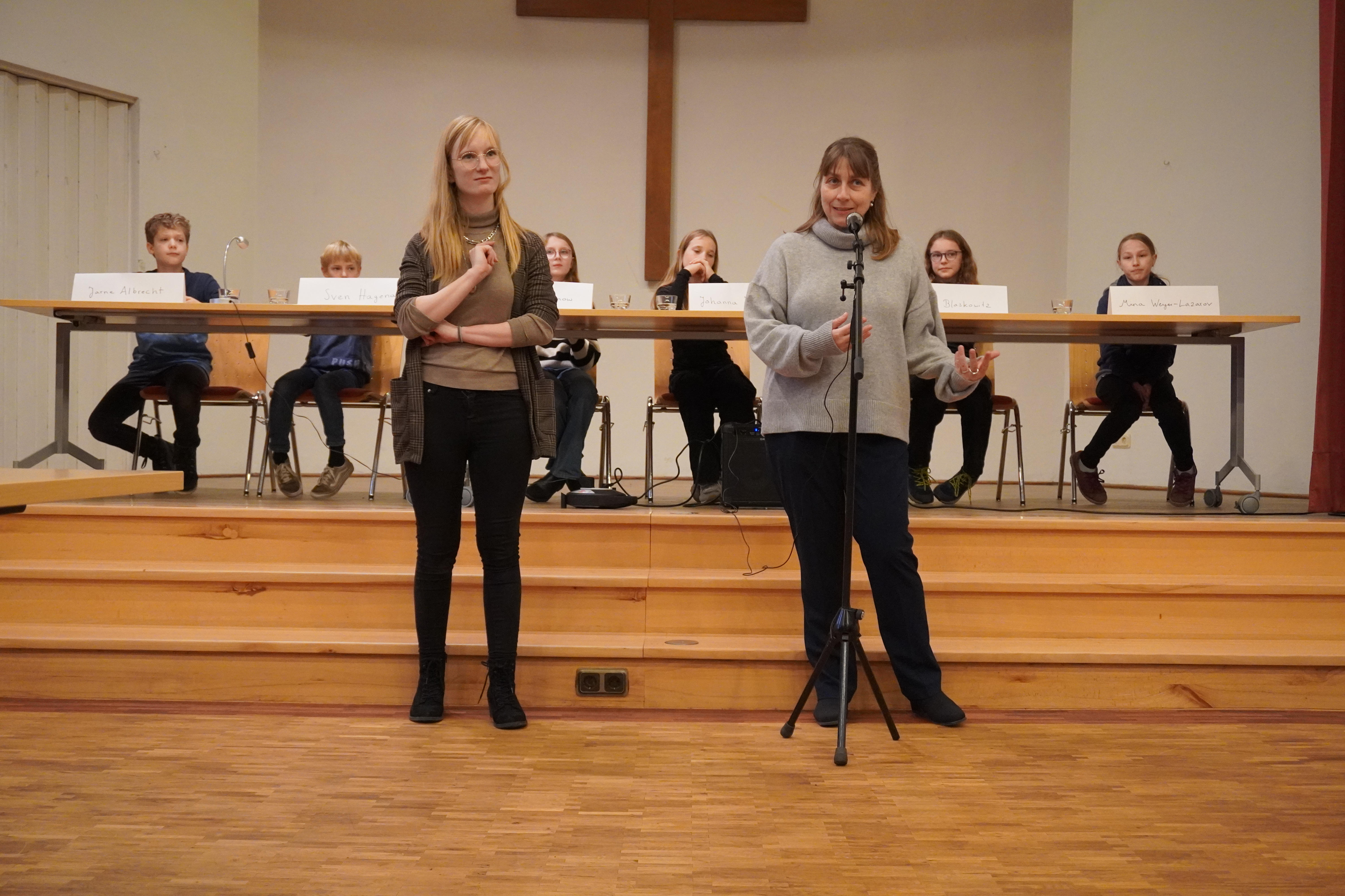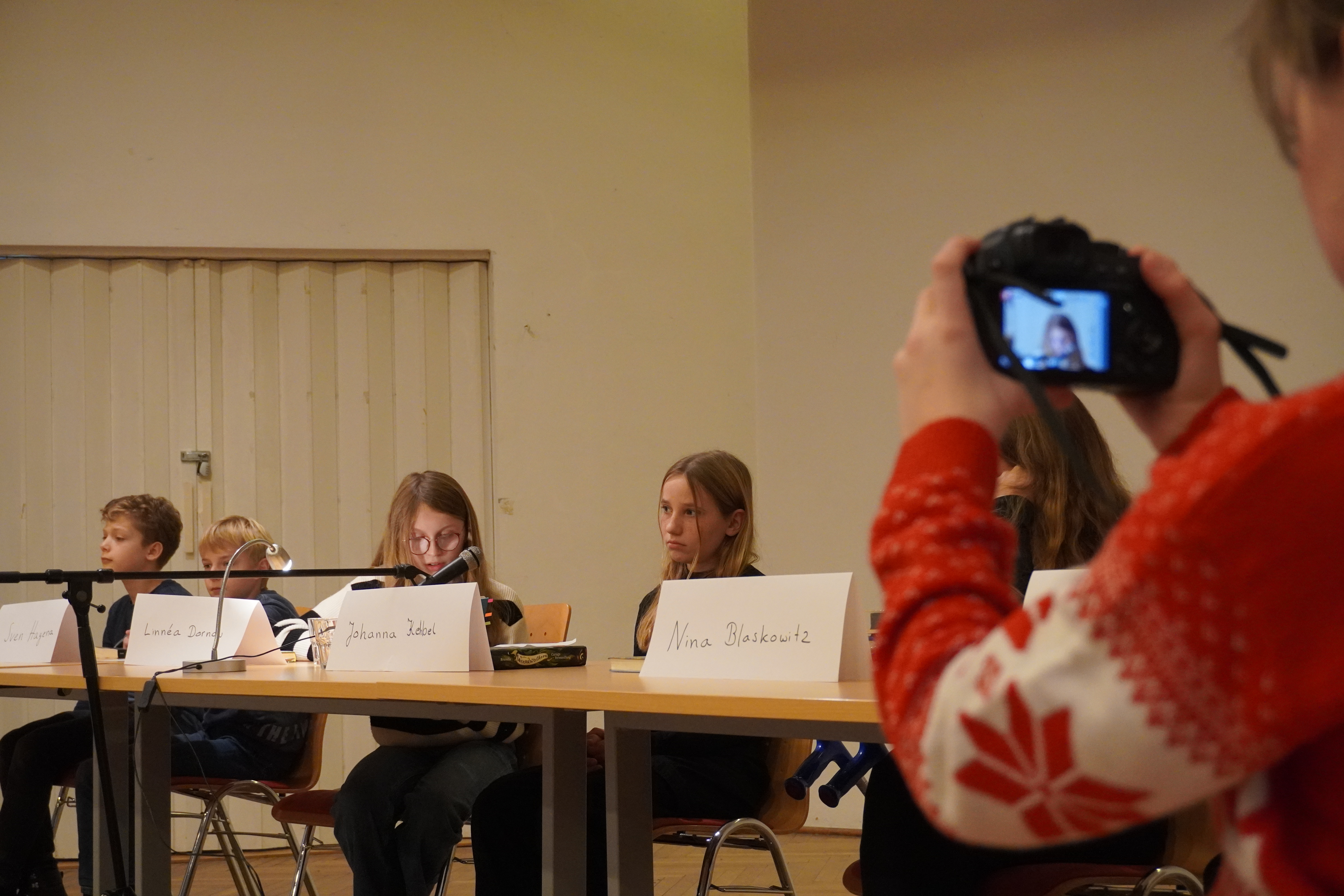 „Ich war ganz schön aufgeregt!“ – auch in diesem Jahr hat der sechste Jahrgang der WRS am Vorlesewettbewerb teilgenommen. Als Klassensieger ihrer sechsten Klassen haben Jarne, Mina, Sven, Johanna, Nina und Linnéa teilgenommen. In der Jury waren Lehrerinnen und Lehrer der WRS (Frau Segger, Herr Eichenberg, Frau Boehme und Frau Finger), Elternvertreter*innen (Frau Löbig, Frau Conzelmann und Frau Honikel-Gelencser), Schüler*innen (Camilla Bunck, Asya Onbasilar und Rana Turanli) und sogar Herr Brautlecht war da. Moderiert wurde die Veranstaltung von Frau Schwarze und Frau Uloth.