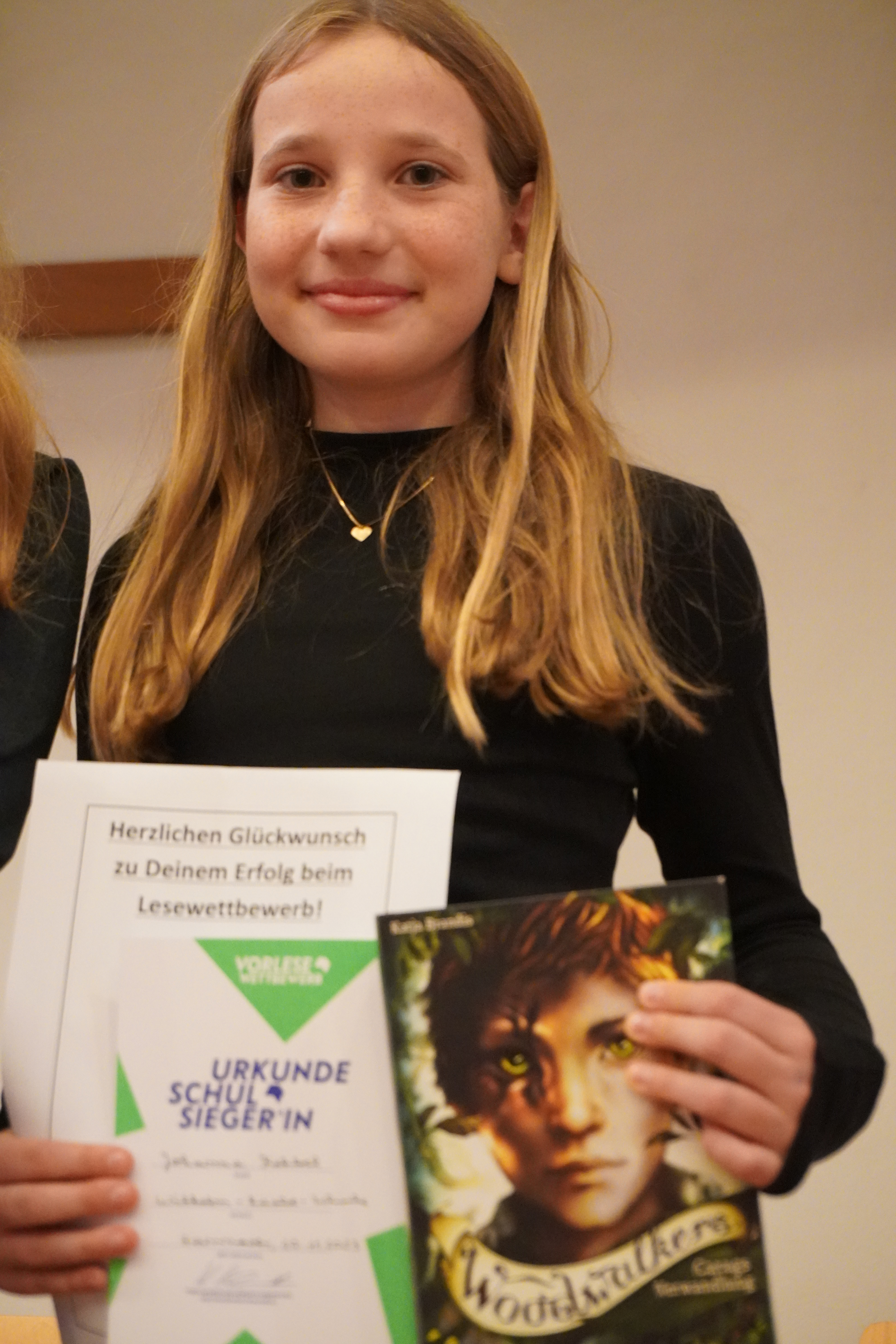 Alle Teilnehmer haben alle erst aus ihrem eigenen Buch vorgelesen und dann aus einem fremden Text. Begleitet wurde alles von motivierenden Plakaten und Applaus ihrer Mitschülerinnen und Mitschüler. Sie hatten alle gute Chancen und die Jury tat sich mit ihrer Entscheidung sehr schwer , doch am Ende gewann Johanna Kehbel aus der 6c mit „Woodwalkers – Carags Verwandlung“ – herzlichen Glückwunsch Johanna!