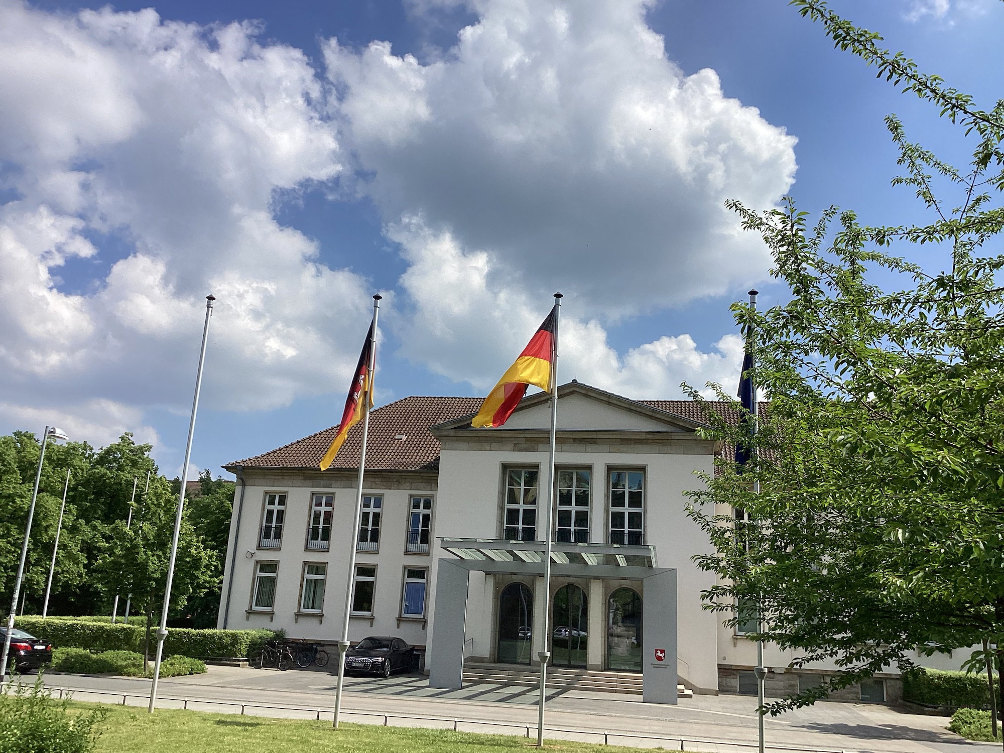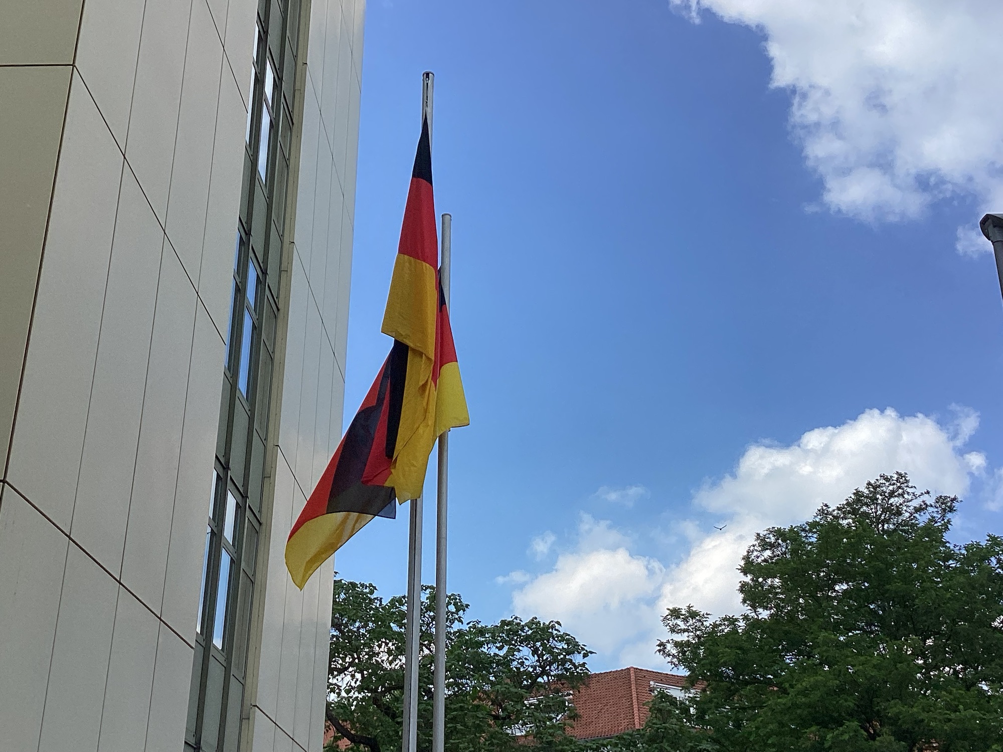 Erkennst Du die Gebäude, vor denen sie wehen? Es sind alles Nachbarn der WRS.
