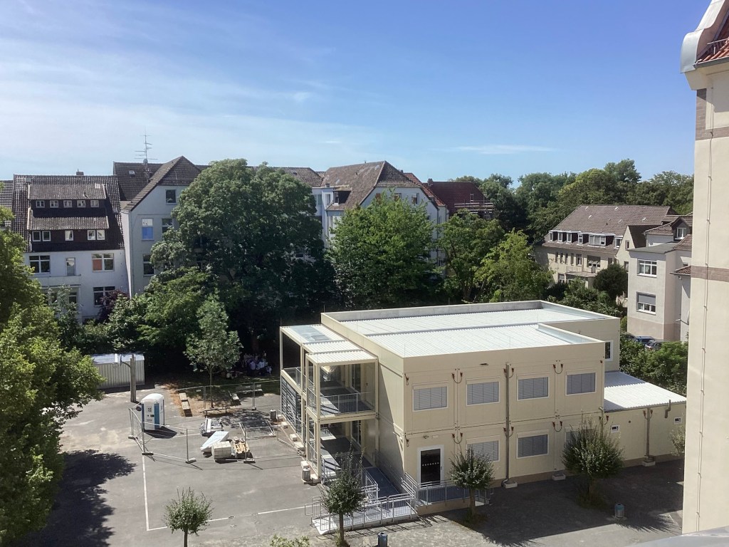 Viele Schüler brauchen viel Platz. Deswegen gab es an der Meterstraße ein zusätzliches Gebäude für zwei Jahrgänge. Dieses wird nun abgerissen – ein neues Gebäude soll dort