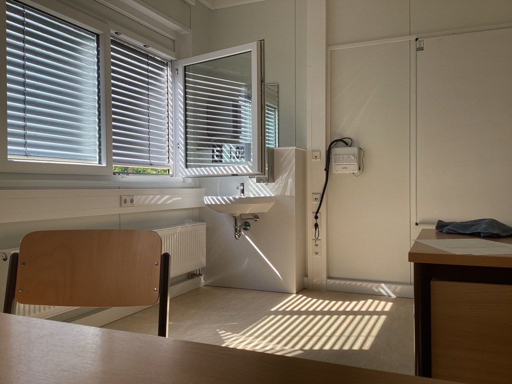 Frau Klein: Die Container haben große Räume, sind aber nicht mit Internet