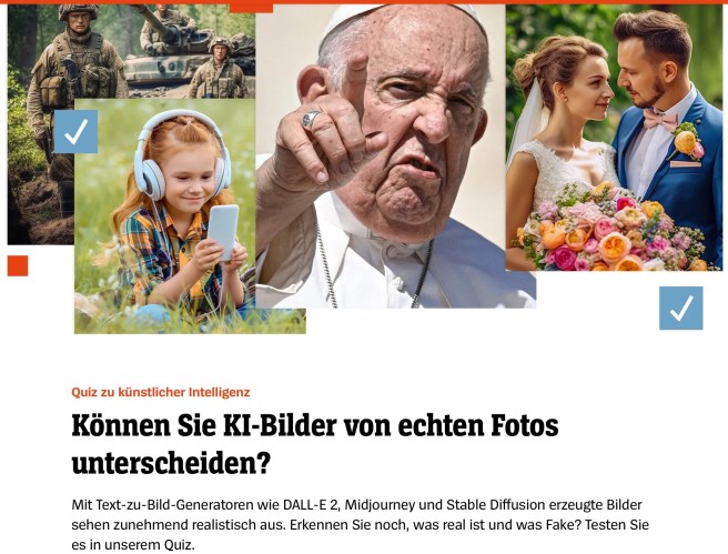 Könnt ihr echte von KI-Bildern unterscheiden? Die 11A hat es im Politikunterricht ausprobiert. Wir haben ein paar Links für euch vorbereitet, damit Ihr euch selbst testen könnt.