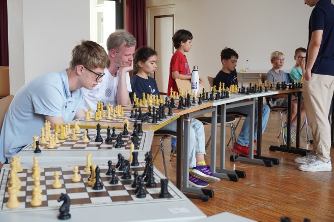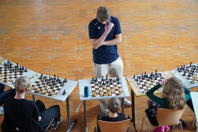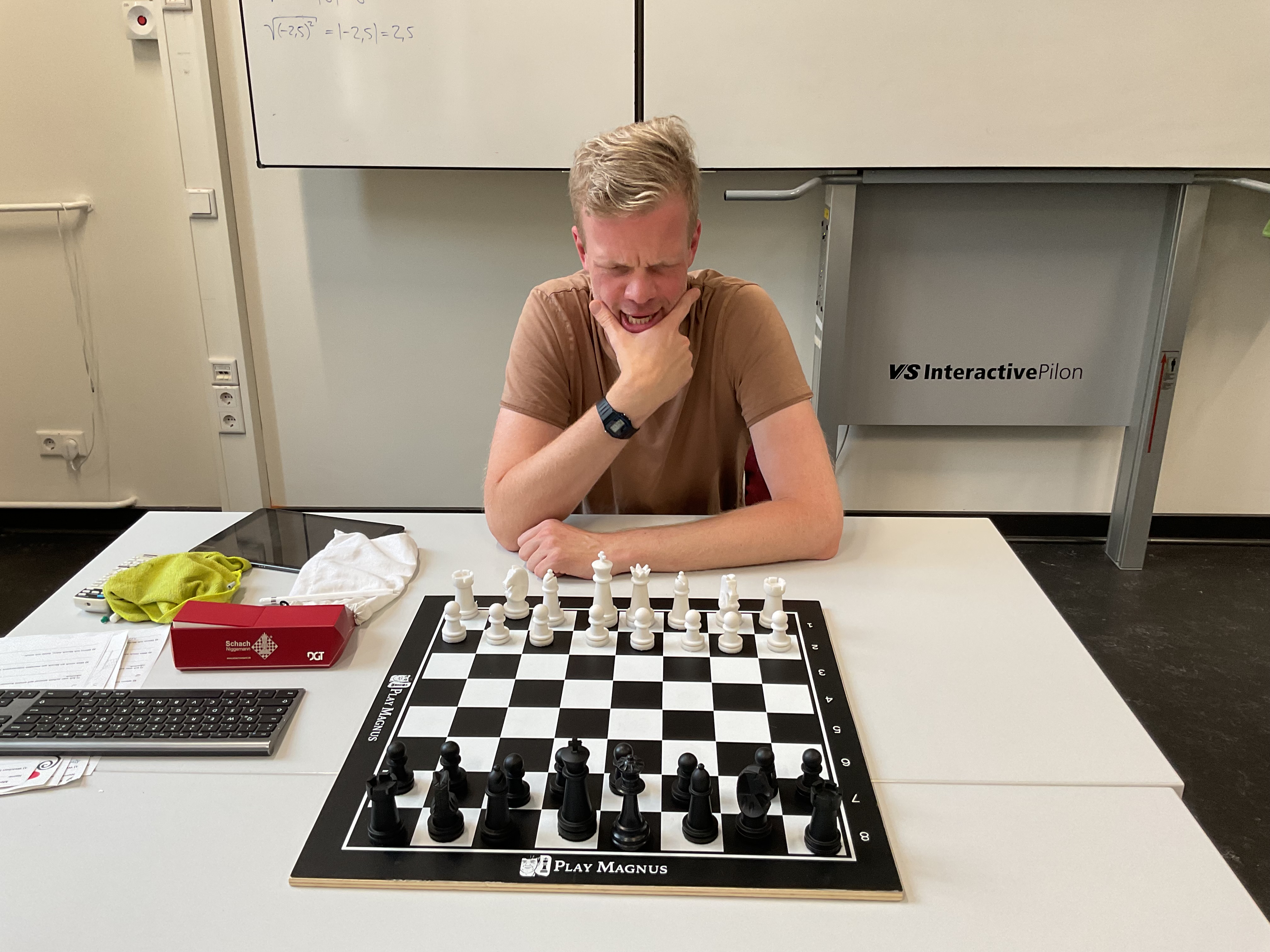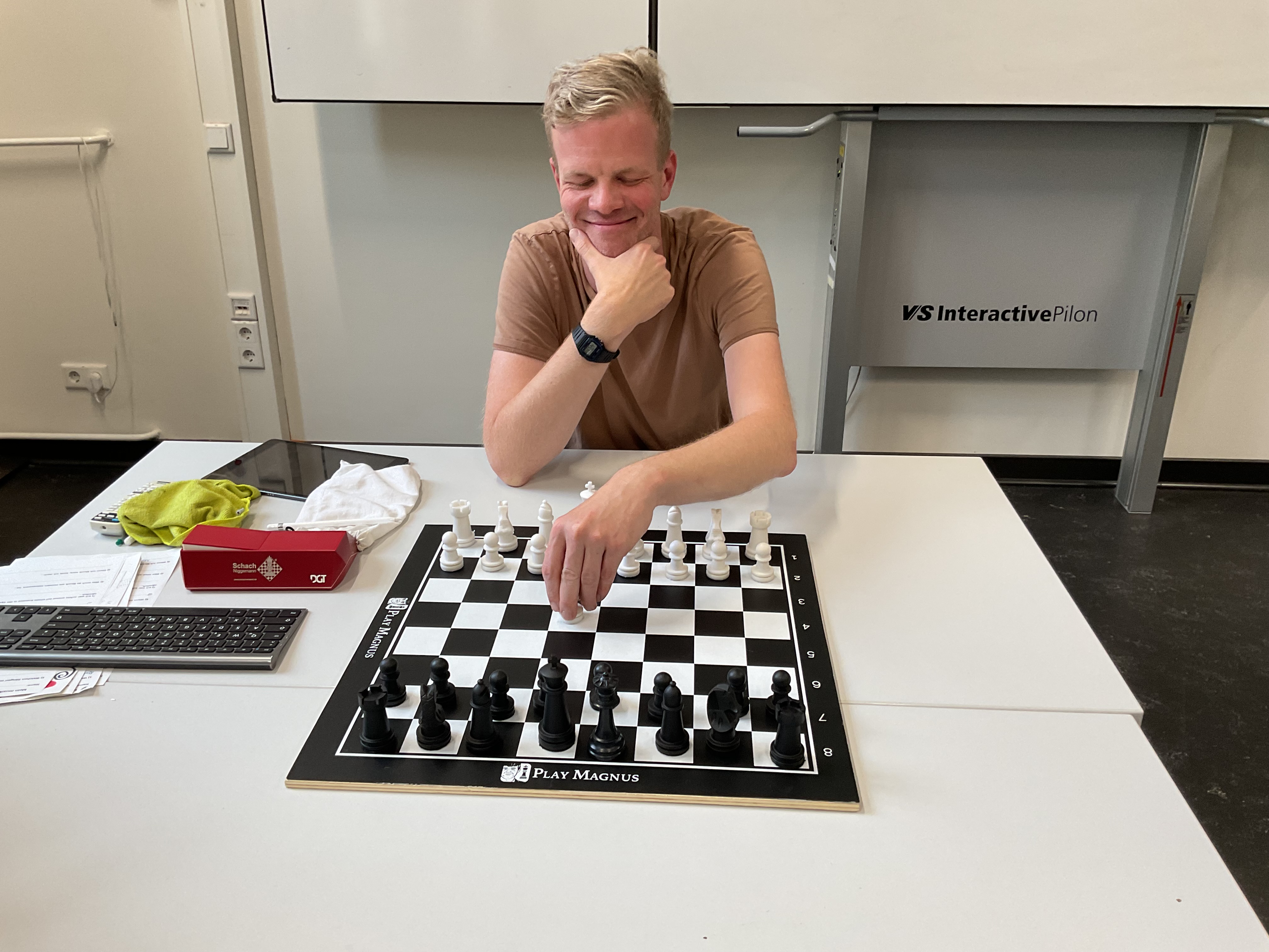 Am Anfang war die Anspannung groß, bei vielen das Ziel: lange durchzuhalten, vielleicht gab es bei dem einen oder anderen auch das Fünkchen Hoffnung, vielleicht sogar gewinnen zu können. Schließlich muss er ja gleichzeit 21 Spiele spielen – da passieren bestimmt auch mal Fehler. Naja: Am Ende triumphierte Jan mit einer bemerkenswerten Leichtigkeit über alle Mitbewerberinnen und Mitbewerber. Alles lief fair und in positiver Atmosphäre ab.