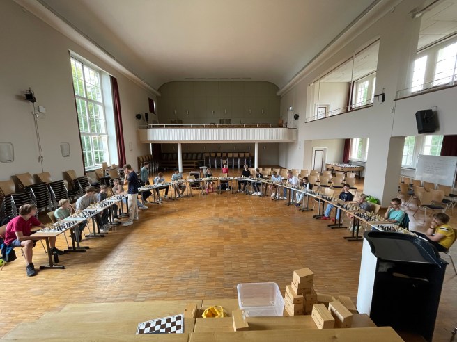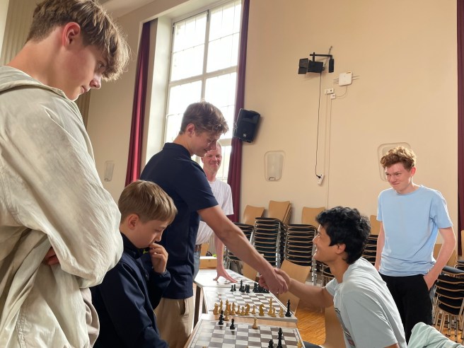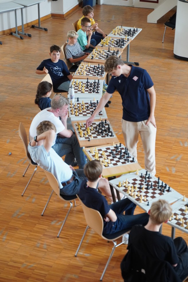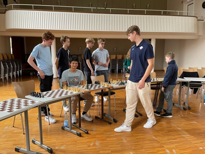 Simultanschach-Turnier: Am 28.8 spielten 21 Schüler und Lehrer gleichzeitig gegen den Schachmeister Jan Pubantz, der in der 2. Schachbundesliga spielt – mit einem klaren Ergebnis.