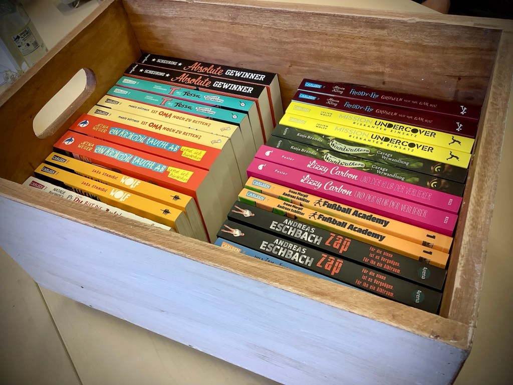 Die Idee dahinter: Wenn Schüler*innen ihr erstes, selbst ausgewähltes Buch fertig haben, können sie sich gleich Nachschub aus der Kiste holen. So bleibt die Lesefreude lebendig, und niemand muss lange auf die nächste spannende Geschichte warten. Die Bücher bleiben in der Schule und können in der rollenden Lesestunde aus der Kiste genommen werden.
