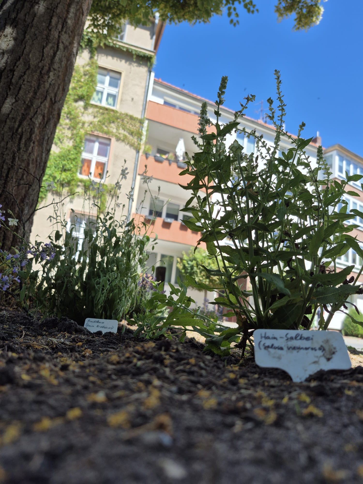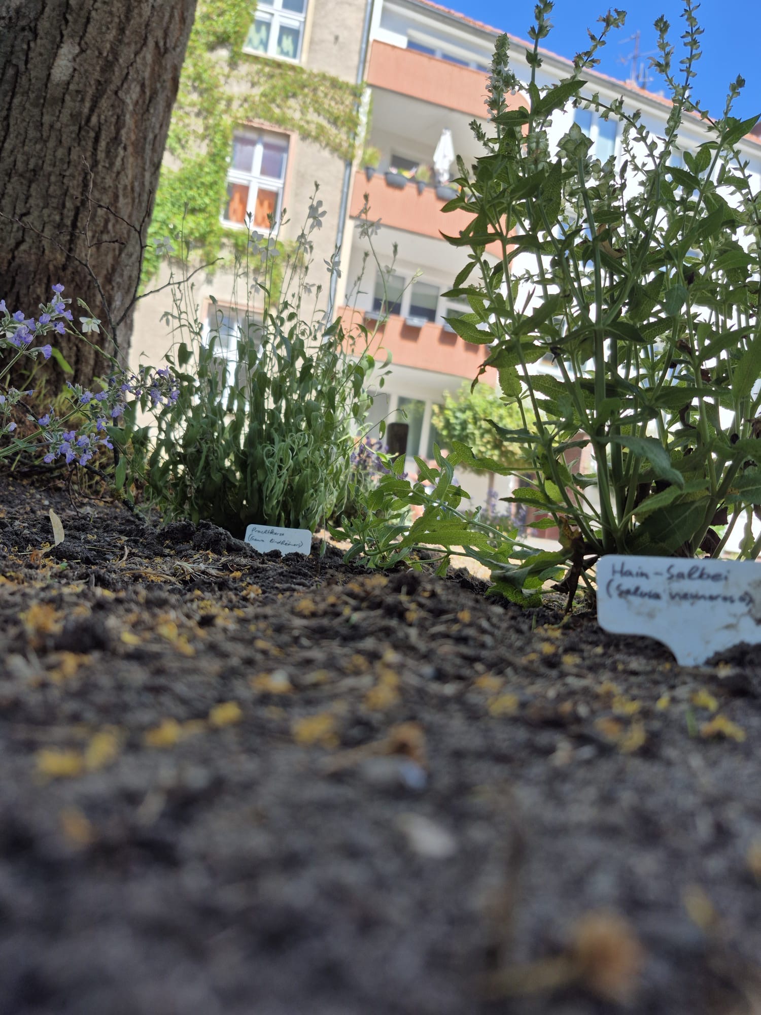 Wir sind gespannt, was „die Bienen und Wir“ aus den Beeten machen, und freuen uns auf viele Bienenbesuche in der Zukunft. Und so sieht das neu angelegte Beet vor der Schule aus.