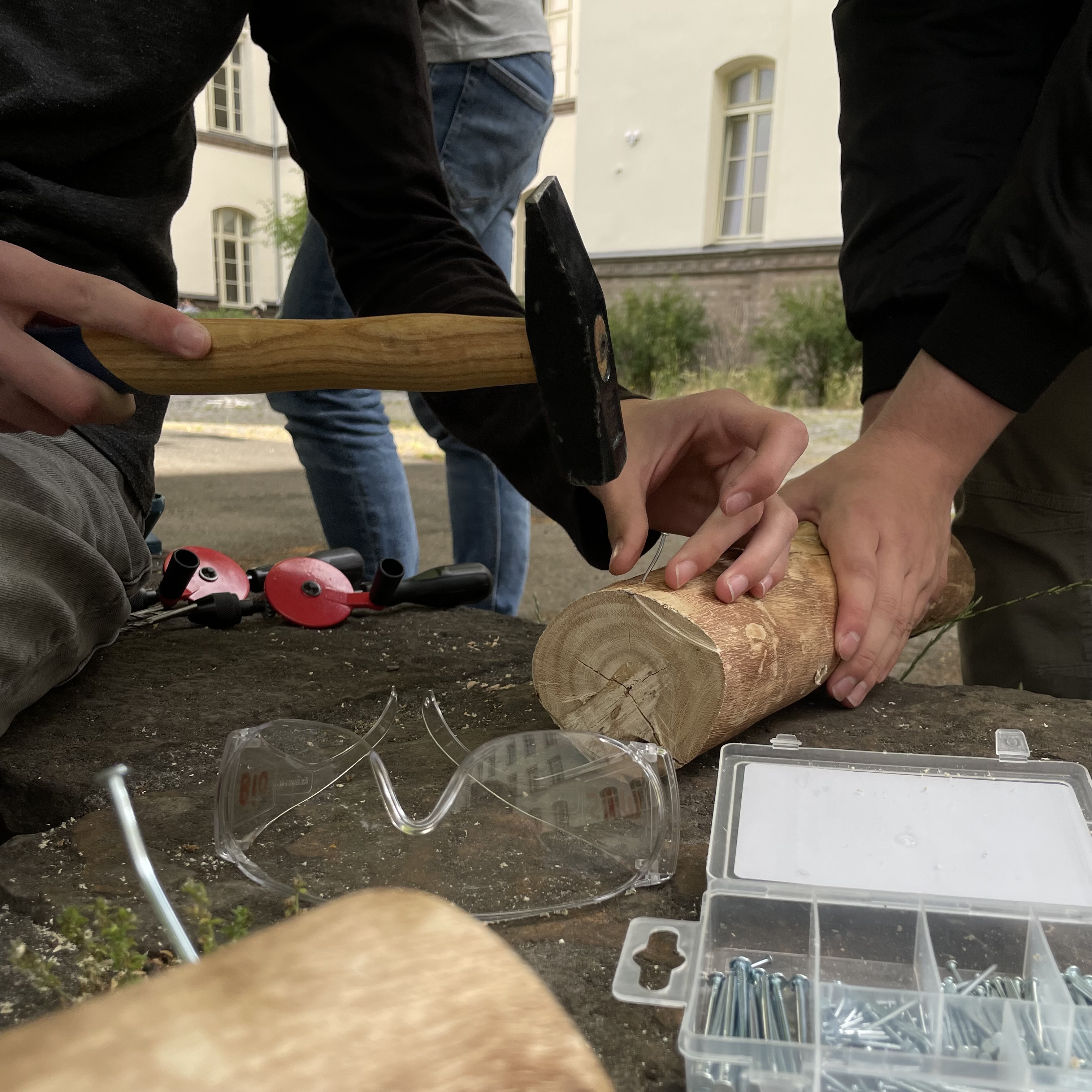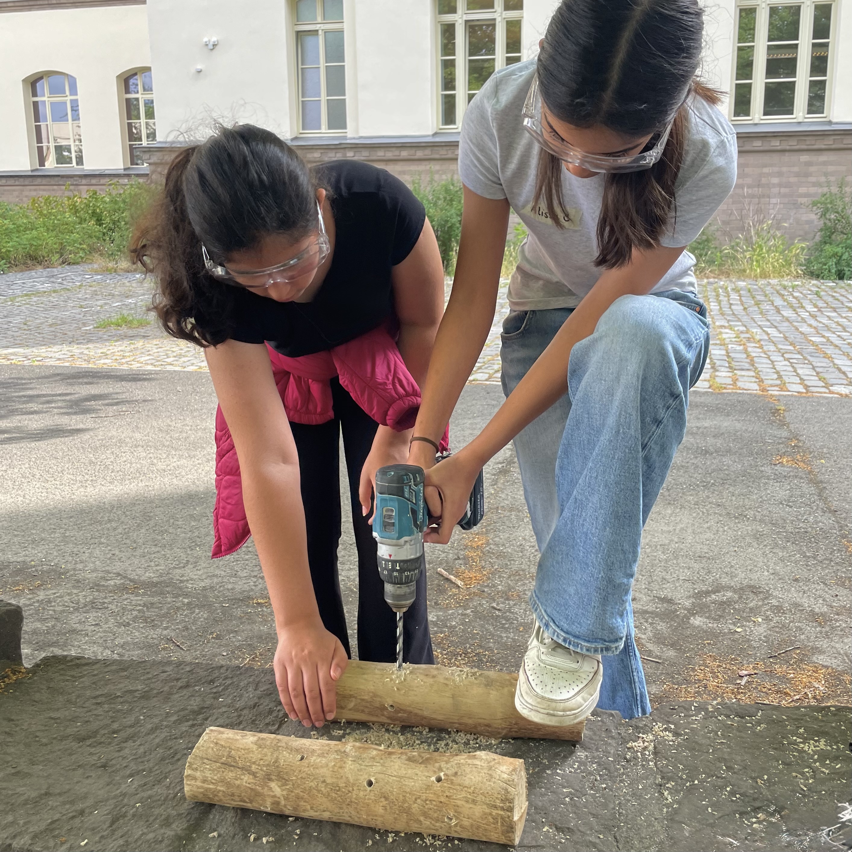 SuS: Wir sind draußen, haben Spaß und wir dürfen Sachen benutzen, die eigentlich für erwachsene sind, zum Beispiel Bohrmaschinen.