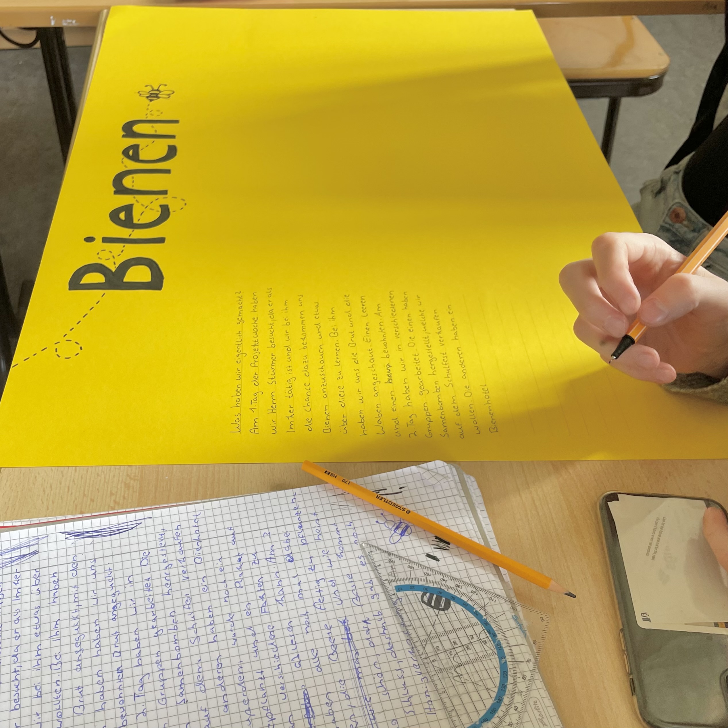 SuS: Wir gestalten Plakate zum Thema Bienen, um die Schule über unser Gelerntes zu informieren.
