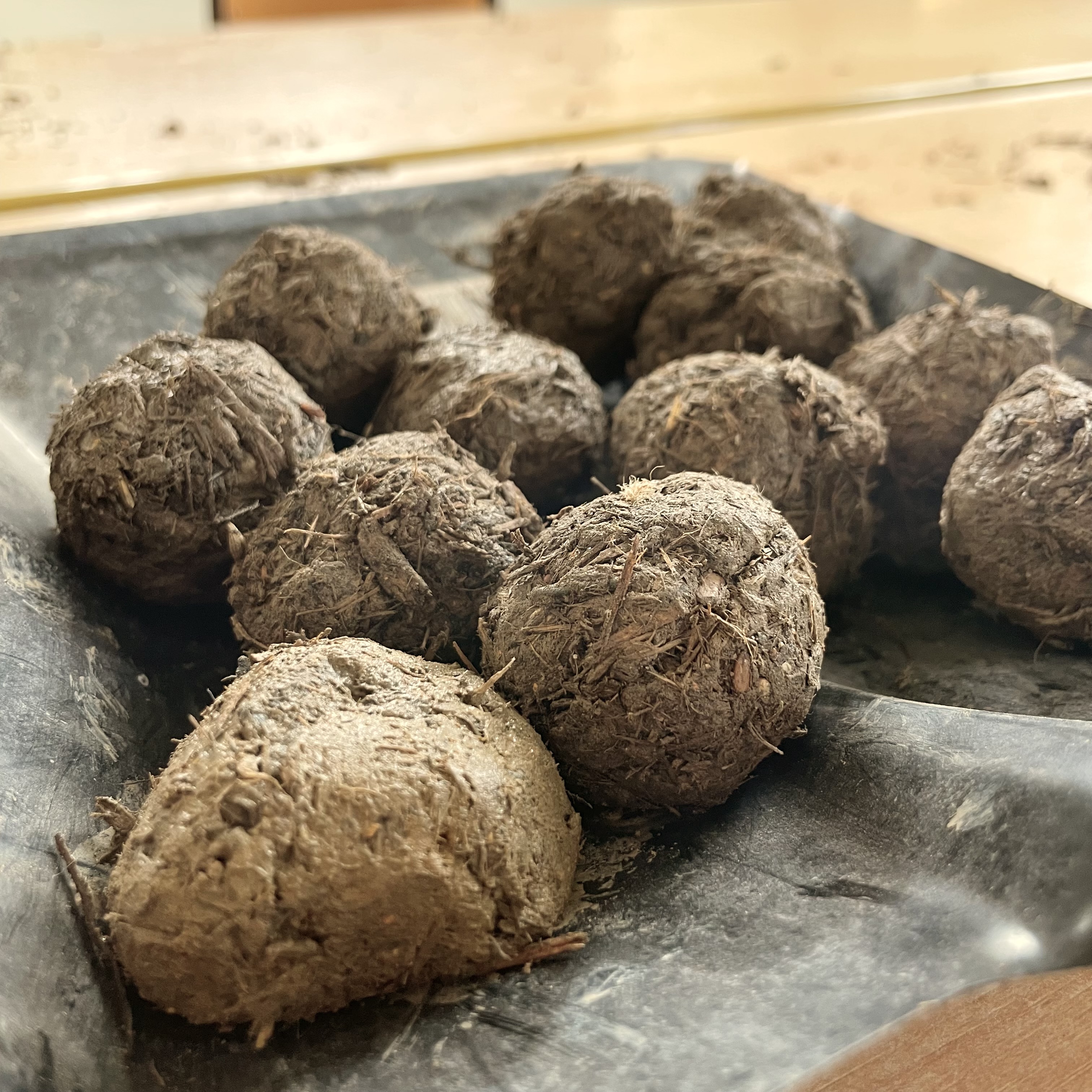 SuS: Wir machen Samenbomben aus Lehm, Erde und Blumensamen, die man gegen eine kleine Spende auf dem Schulfest erwerben kann.