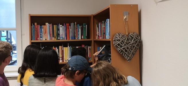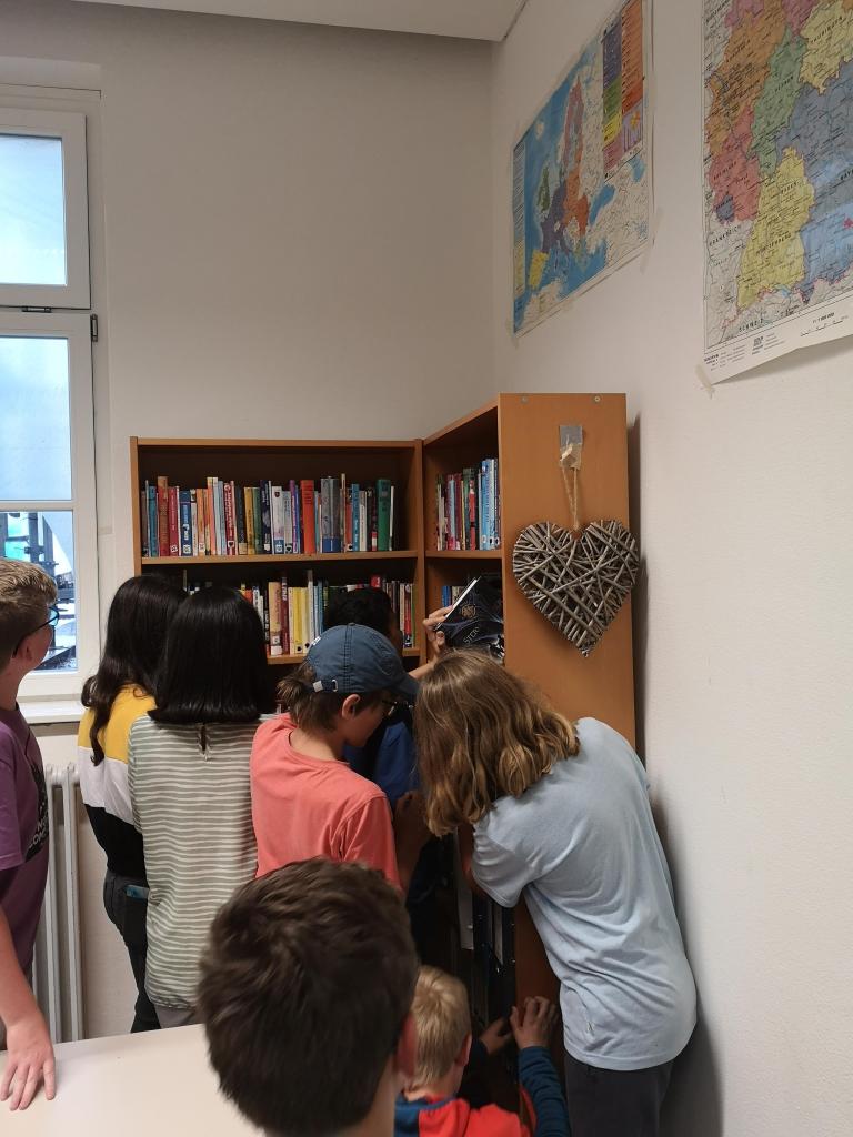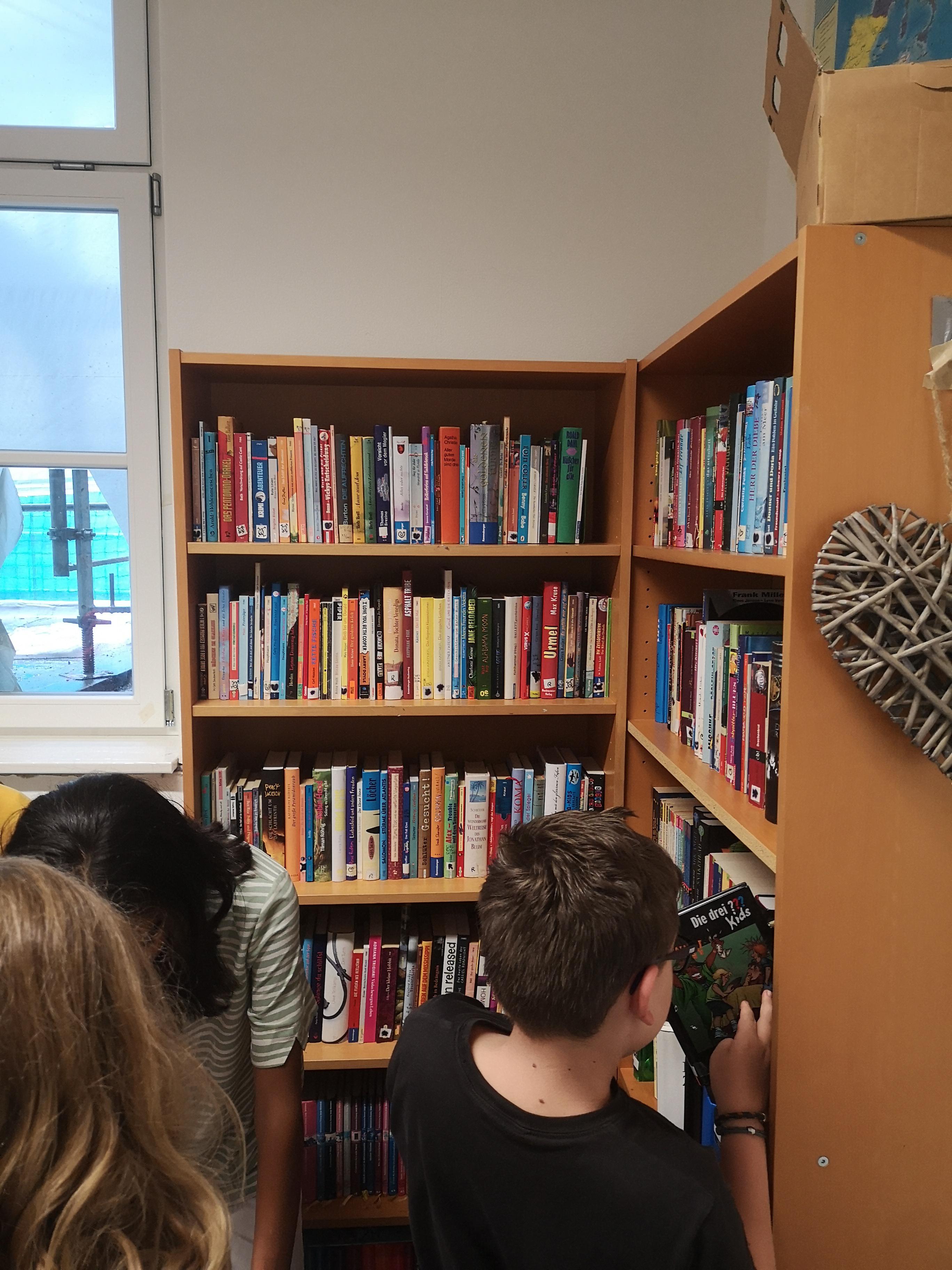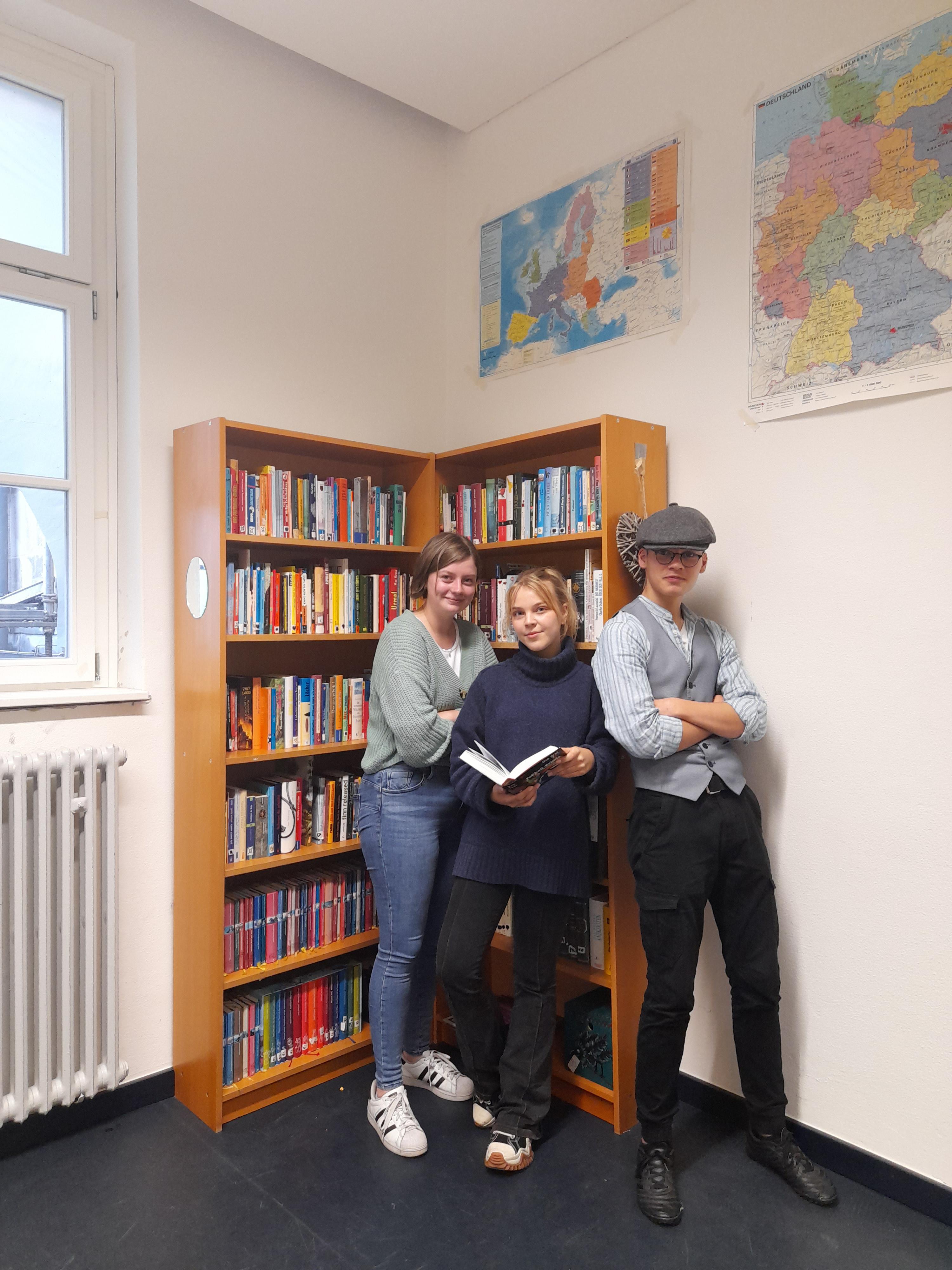 Bisher gab es nur eine Lehrerbibliothek. Jetzt gibt es jedoch auch eine Schülerbibliothek. Die Deutschfachgruppe hat zusätzlich Bücher aus der Lehrerbibliothek gespendet, die jetzt für alle ausleihbar sind. Es beginnt bei Jugendbüchern wie z.B. Percy Jackson, Robin Hood oder Die Drei??? bis hin zu Jahrbüchern aus dem Jahr 2011.