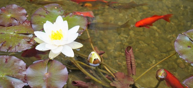 Nur ein paar Schritte entfernt von uns findet ihr eine kleine bunte Oase – rund um den Teich beim Regionsgebäude.
